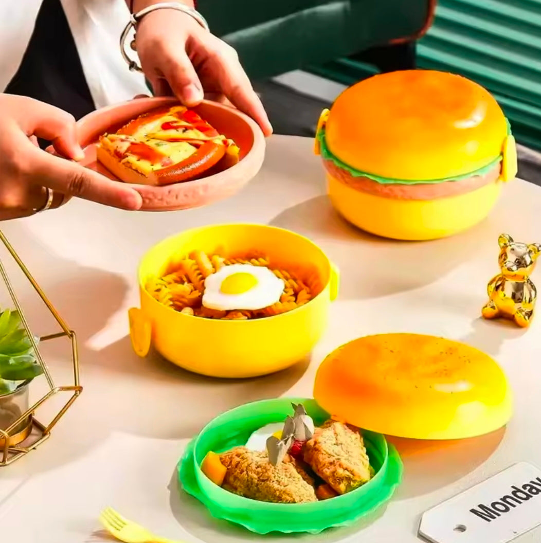 Cute Double-layer Hamburger Lunch Box Food-grade for Students and Children Microwaveable Bento Box