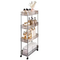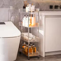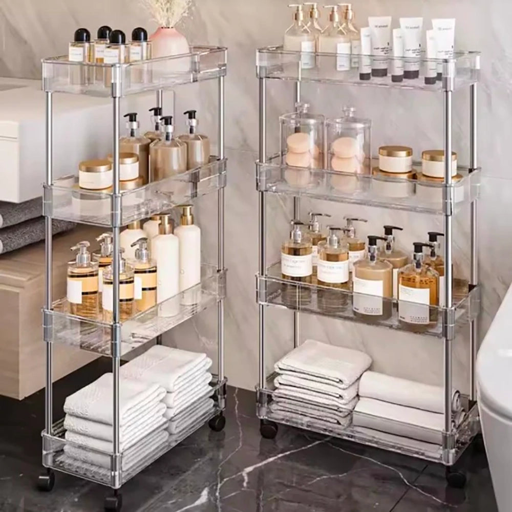 Storage: Features four tiers of storage, offering ample space to organize various items like bathroom essentials, kitchen supplies, or office items.