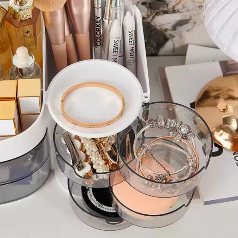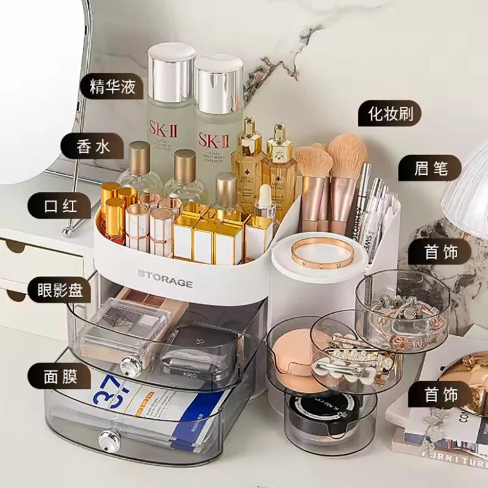 360 Degree Rotating Makeup Brushes Organizer Desk Organizer Cosmetic Storage Box with Drawers Large Capacity Storage Basket