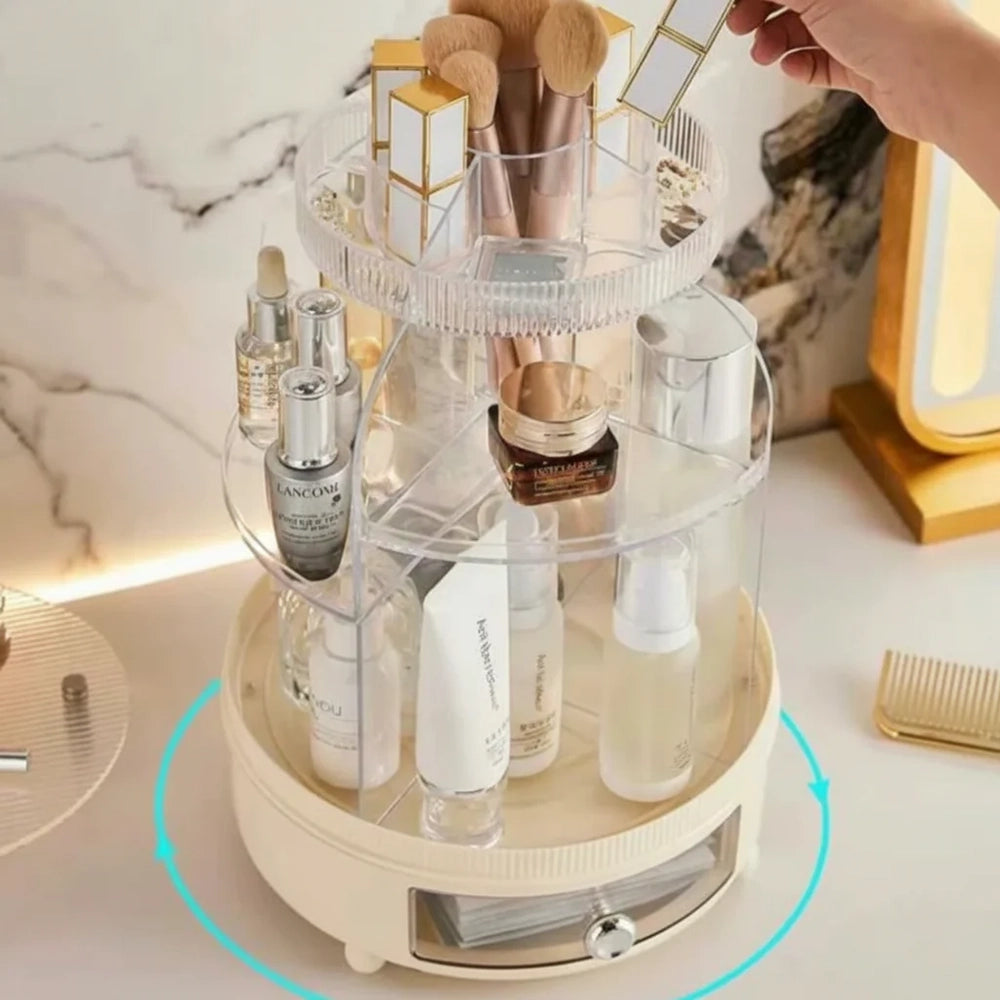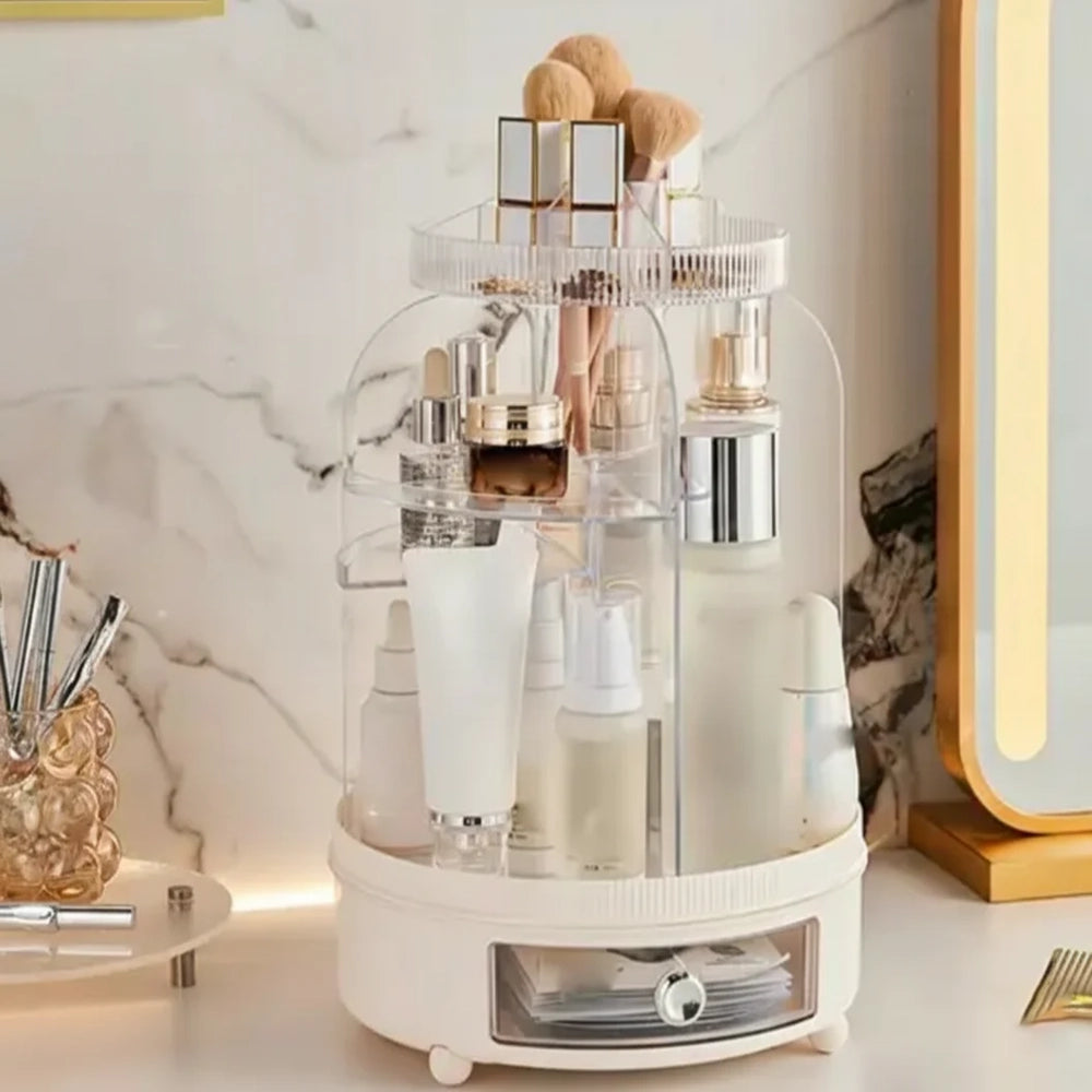 360° Rotating Cosmetics Organizer, Dust Proof Dressing Table Storage Rack, Cosmetics Drawer Organizer