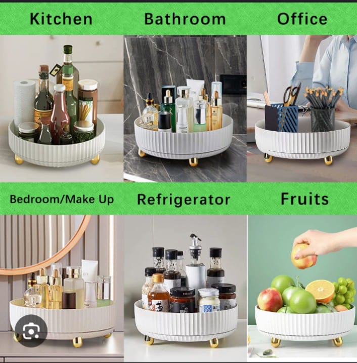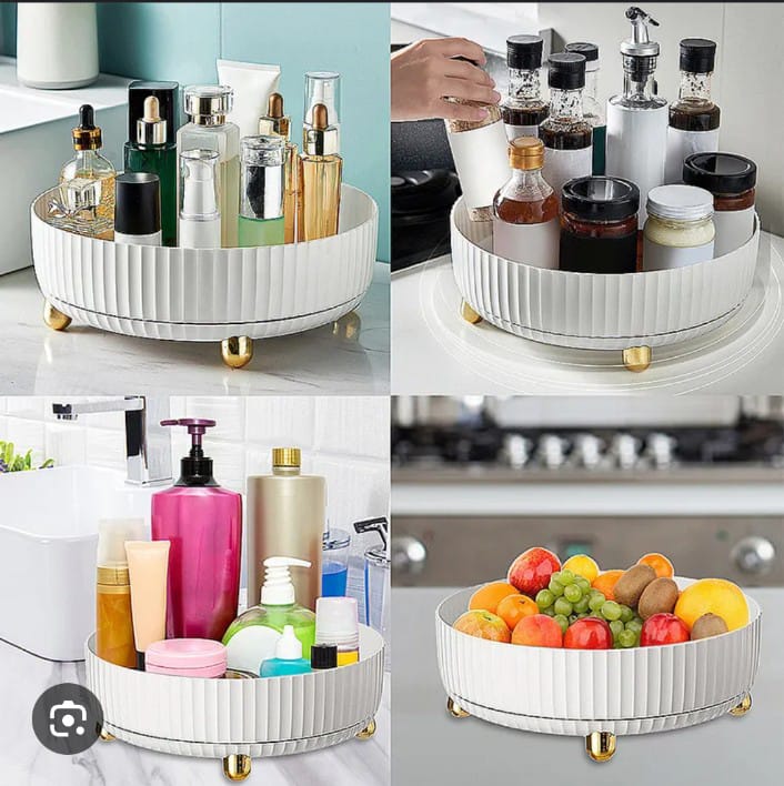 Keep your kitchen and home organized with the 360° Rotating Strong Tray. This sturdy and durable tray makes it easy to access spices, bottles, cosmetics, or other essentials with just a smooth spin. Perfect for kitchens, bathrooms, offices, or dressing tables. Available in random colors for a stylish touch.