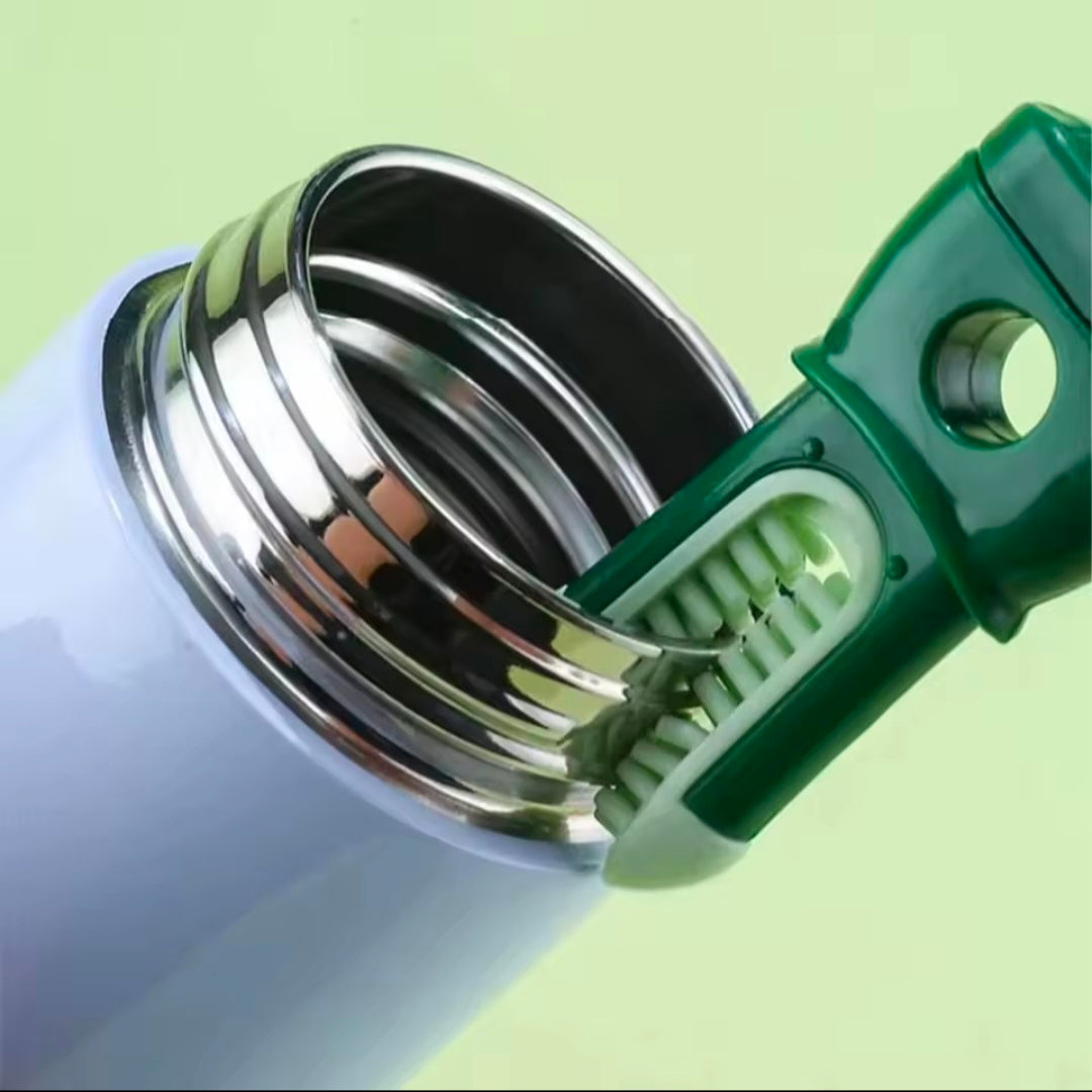 It often includes multiple smaller brush heads for cleaning hard-to-reach areas like bottle gaps and lids.