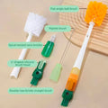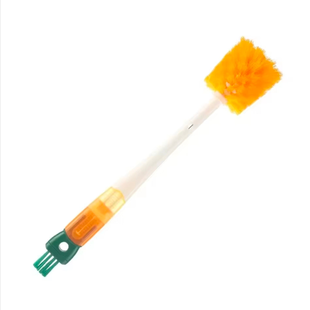 The brush features a long handle for reaching the bottom of bottles and a main brush head with soft bristles.