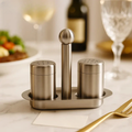 Add a touch of modern luxury to your table setting with this stunning Luxury Salt & Pepper Shaker Set, crafted from brushed stainless steel and paired with an elegant matching holder. Designed for those who love both style and functionality, this set makes a bold statement in any kitchen or dining room.