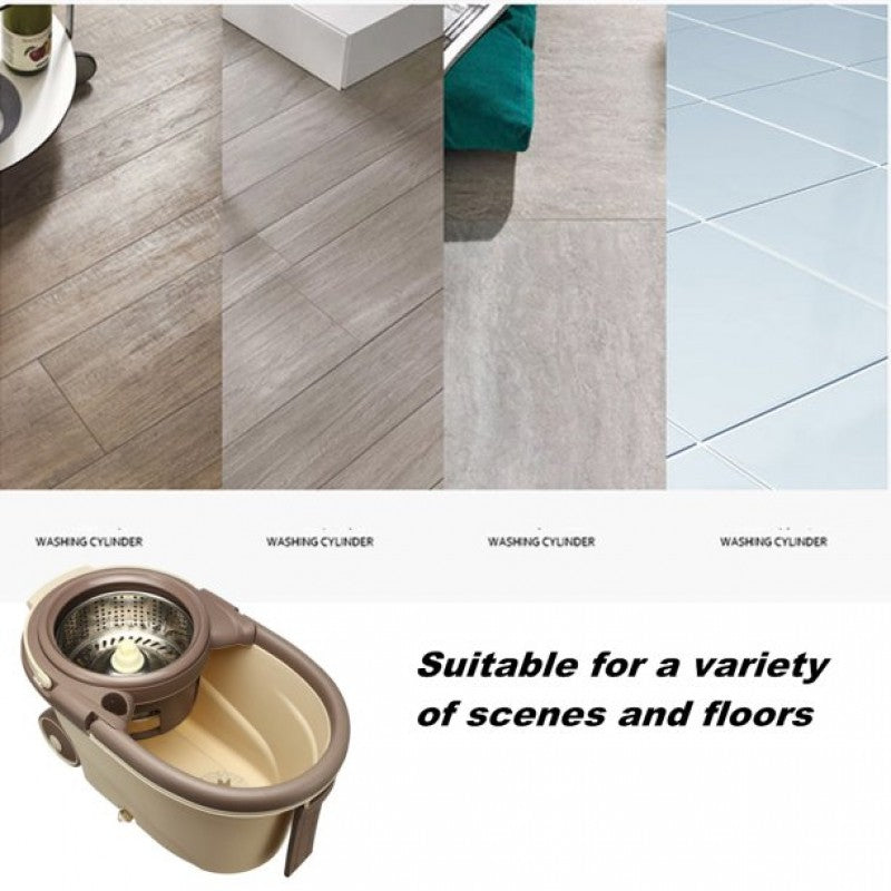 Materials: Typically includes a stainless steel mop pole and a bucket made of hard plastic or stainless steel, with absorbent microfiber mop heads.
