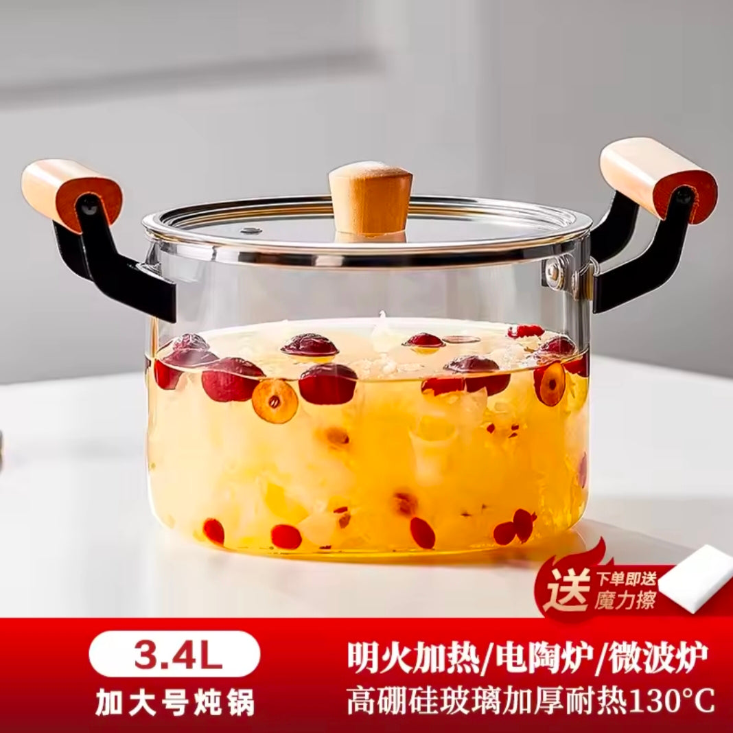 Flameproof Glass Saucepan Explosion-Proof Noodle Pot, Heat Retention Soup Maker, Transparent Kitchen Cooking Pen Easy Clean
