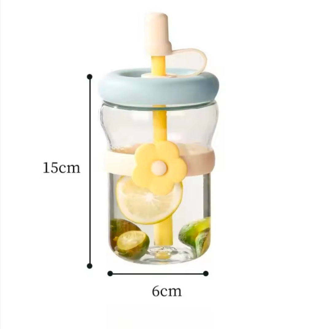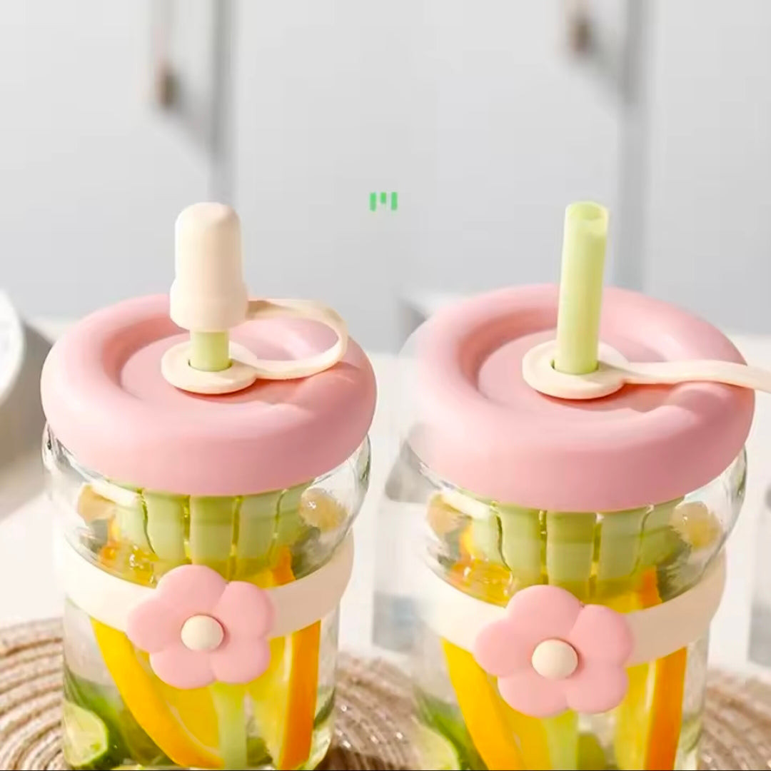 Flower Cup High Aesthetic Glass Portable Straw Cup Water Cup