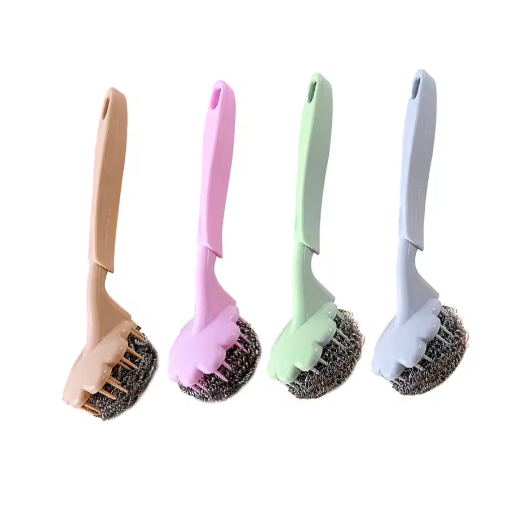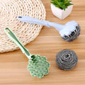 Flower Shape Steel Wire Ball Brush Long Handle Metal Scouring Pad Kitchen Bathroom Pan Pot Cleaning Coffee