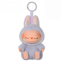 This is a collectible plush toy featuring the popular Labubu character in a lavender color, designed to look as if it's sleeping.