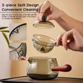 The wooden handle is designed to be ergonomic and anti-scalding for a comfortable grip.