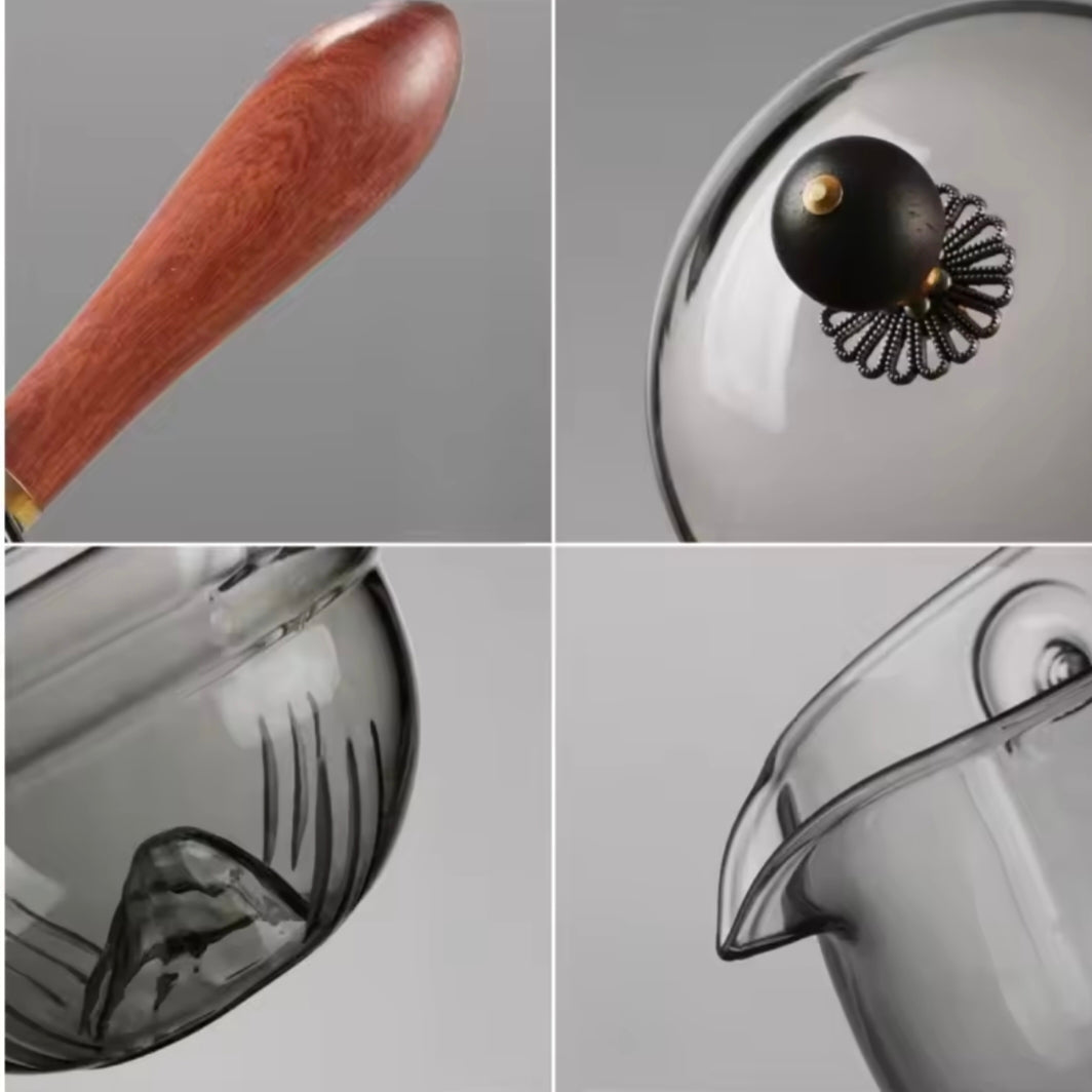 The teapot is typically made of heat-resistant borosilicate glass.