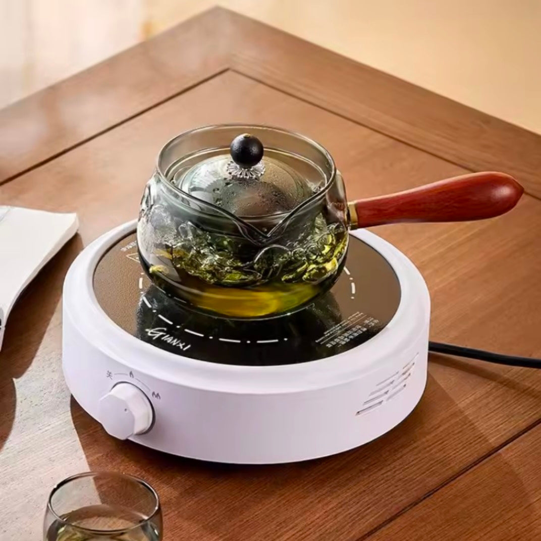 Some versions have a 360-degree rotating base or a magnetic switch for easy pouring and tea separation.