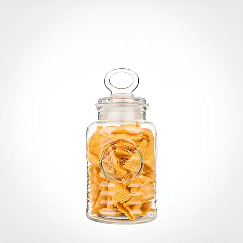Spacious and durable glass jar, ideal for storing dry fruits, snacks, or grains
