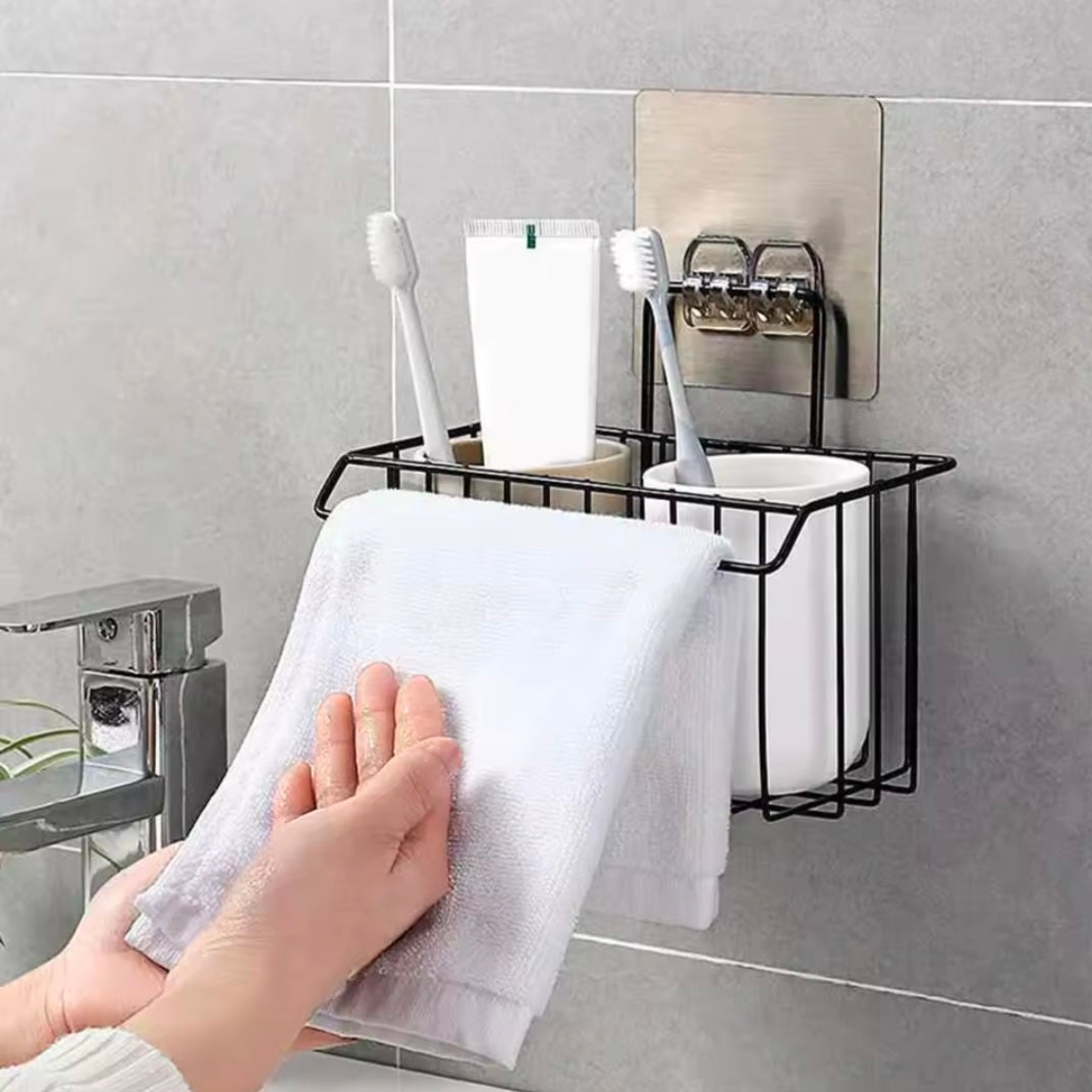 It is suitable for holding items like toothbrushes, toothpaste, sponges, and soap.