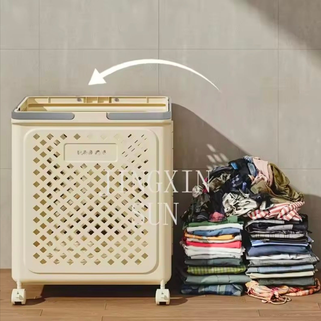 Household New Products Multifunctional Foldable Laundry Basket Toys Clothes Plastic Storage Basket with Wheel Handles