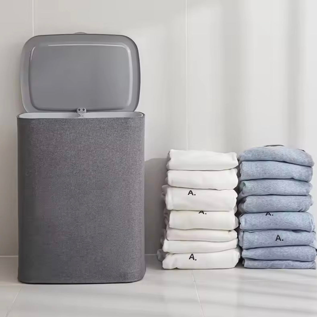 It is available as a dual-compartment design, allowing for the separation of clothes by color or type.