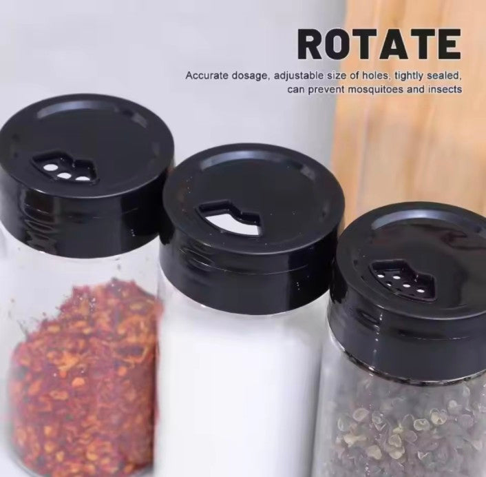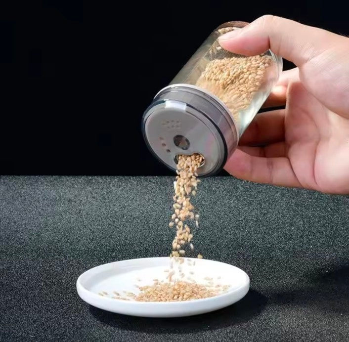Jar Features: The glass jars are transparent, allowing you to easily identify the contents, and often come with lids that have multiple hole types (micropores for powder, mesopores for granules, macropores for lumps) for controlled dispensing.