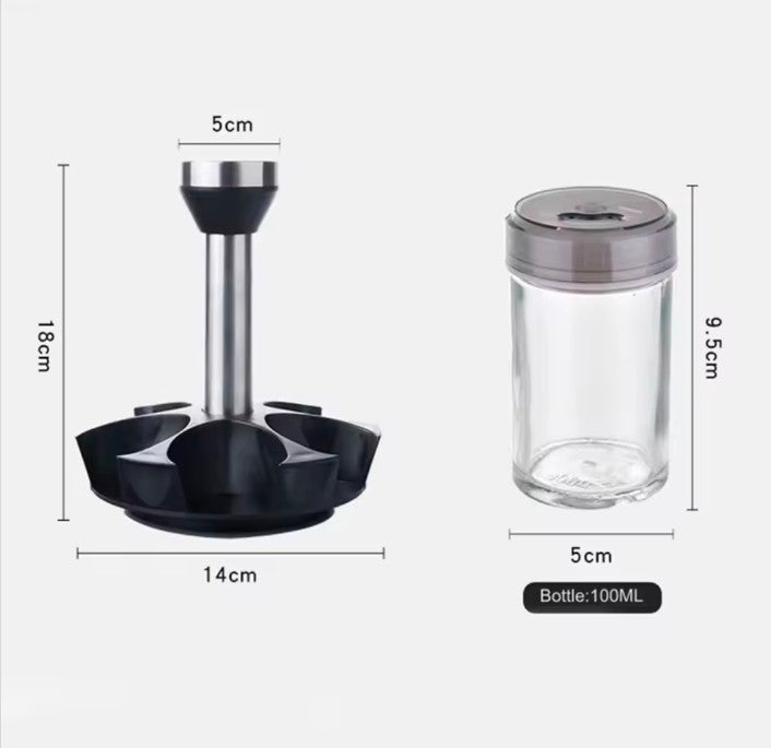 Design: It features a 360-degree rotating base for easy access to all spices and a sleek, modern look.