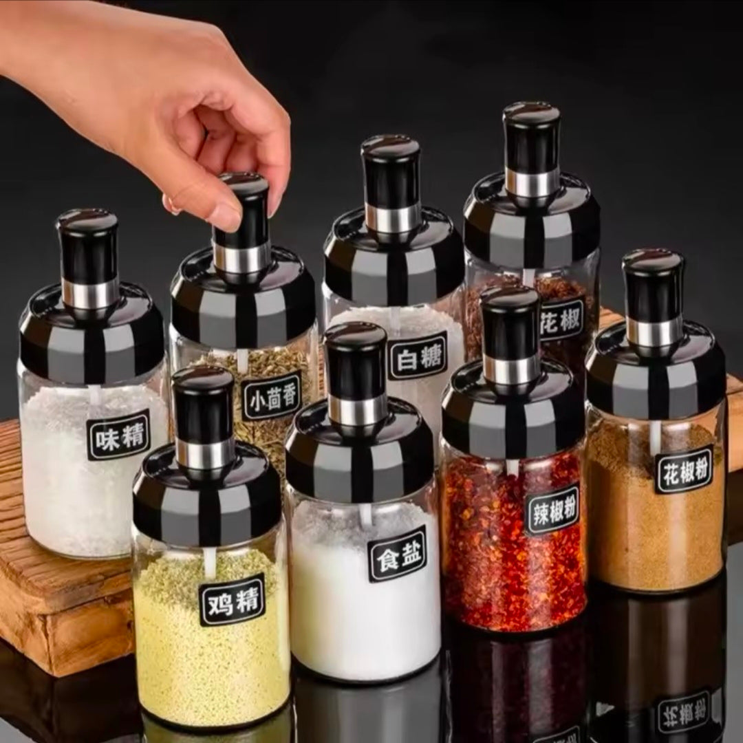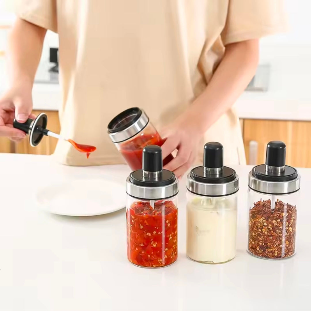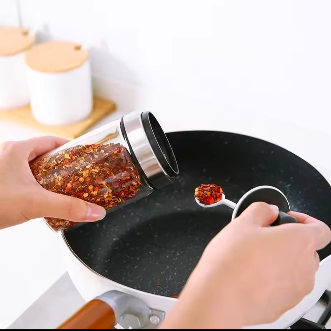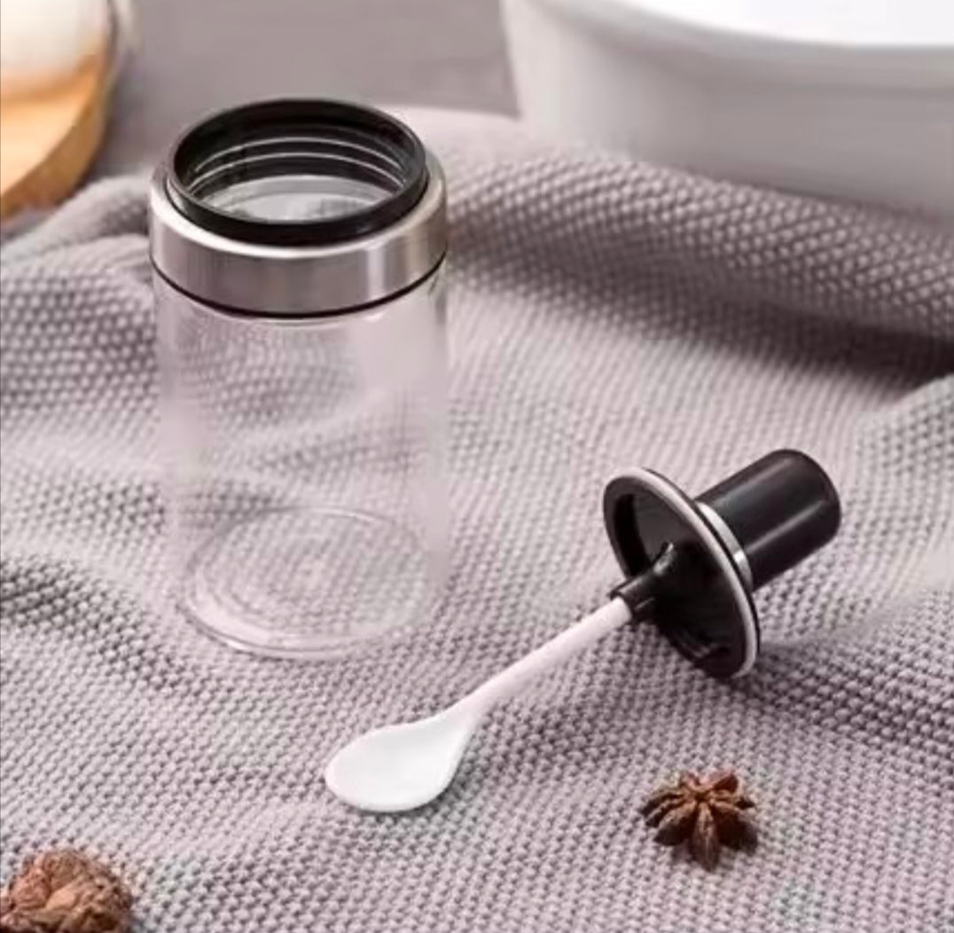 Kitchen Salt Pepper Bottle Glass Seasoning Bottle With Spoon Bush Sugar Salt Dispenser Seasoning Jar Cooking Shaker Container