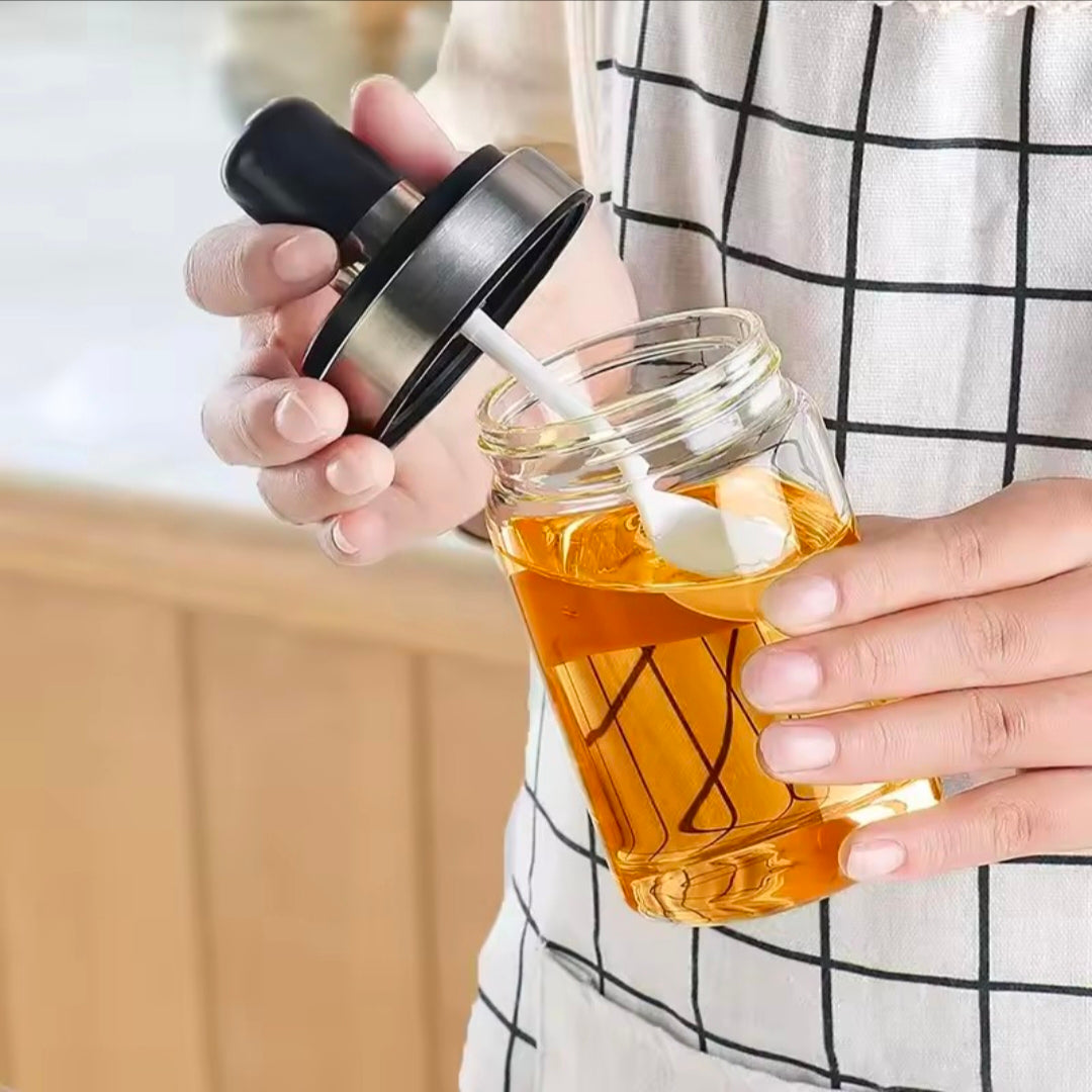 The dispenser is suitable for various thick liquid condiments like honey, syrup, or oyster sauce.
