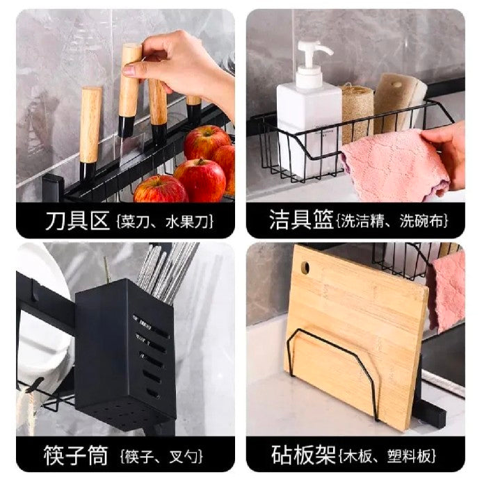 Kitchen Storage Shelf Above The Sink Bowl Draining Racks Multifunctional Dish Knife Rag Spoons sink Rack Set Organizer kitchen 85 cm