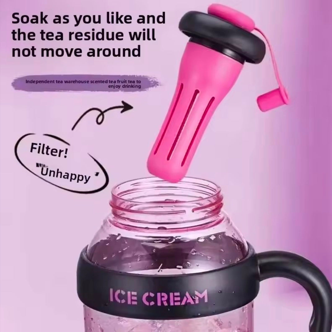 Large Capacity Straw Water Bottle for Girls Student Summer Tea Water Separation Portable High Aesthetic Value Tea Water Bottle