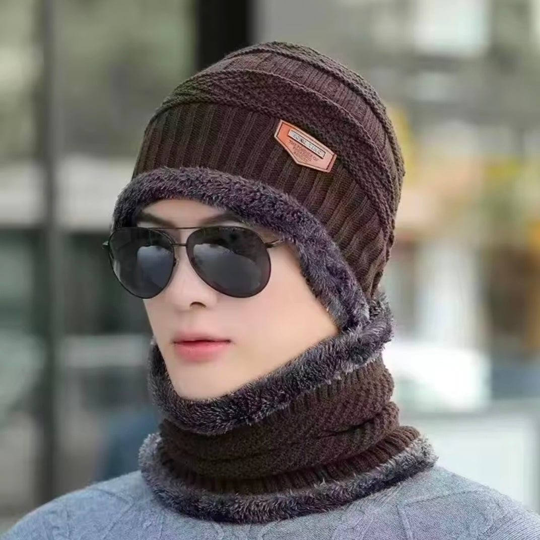 Men Warm Winter Knitted Beanie Hat Thick Knitted Hat Outdoor Riding Hat Warm Thickening Velvet Neck Protect Cap Motorcycle Mask