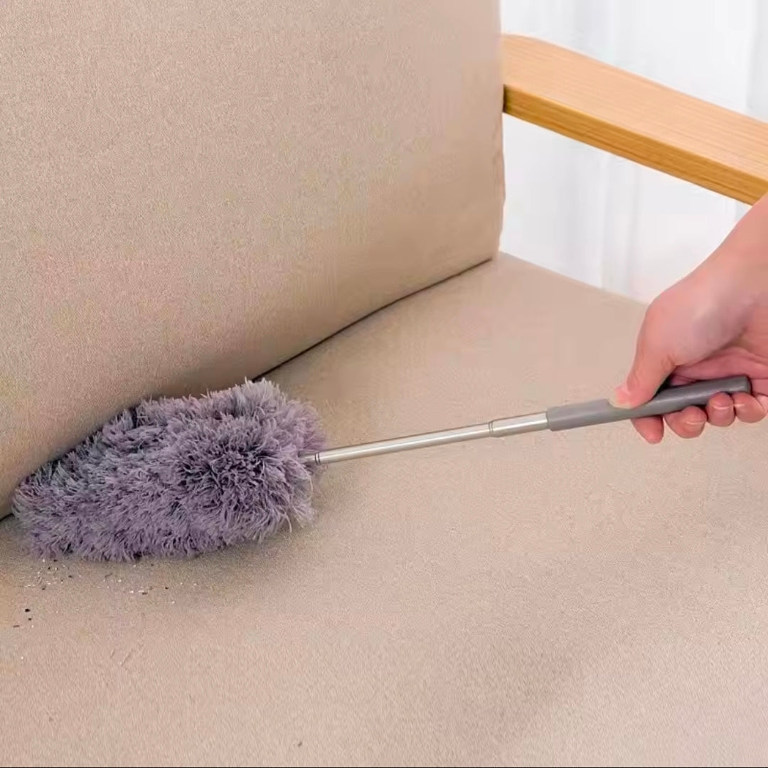 The duster head is made of microfiber, which is effective at attracting dust and can be bent to clean hard-to-reach areas.