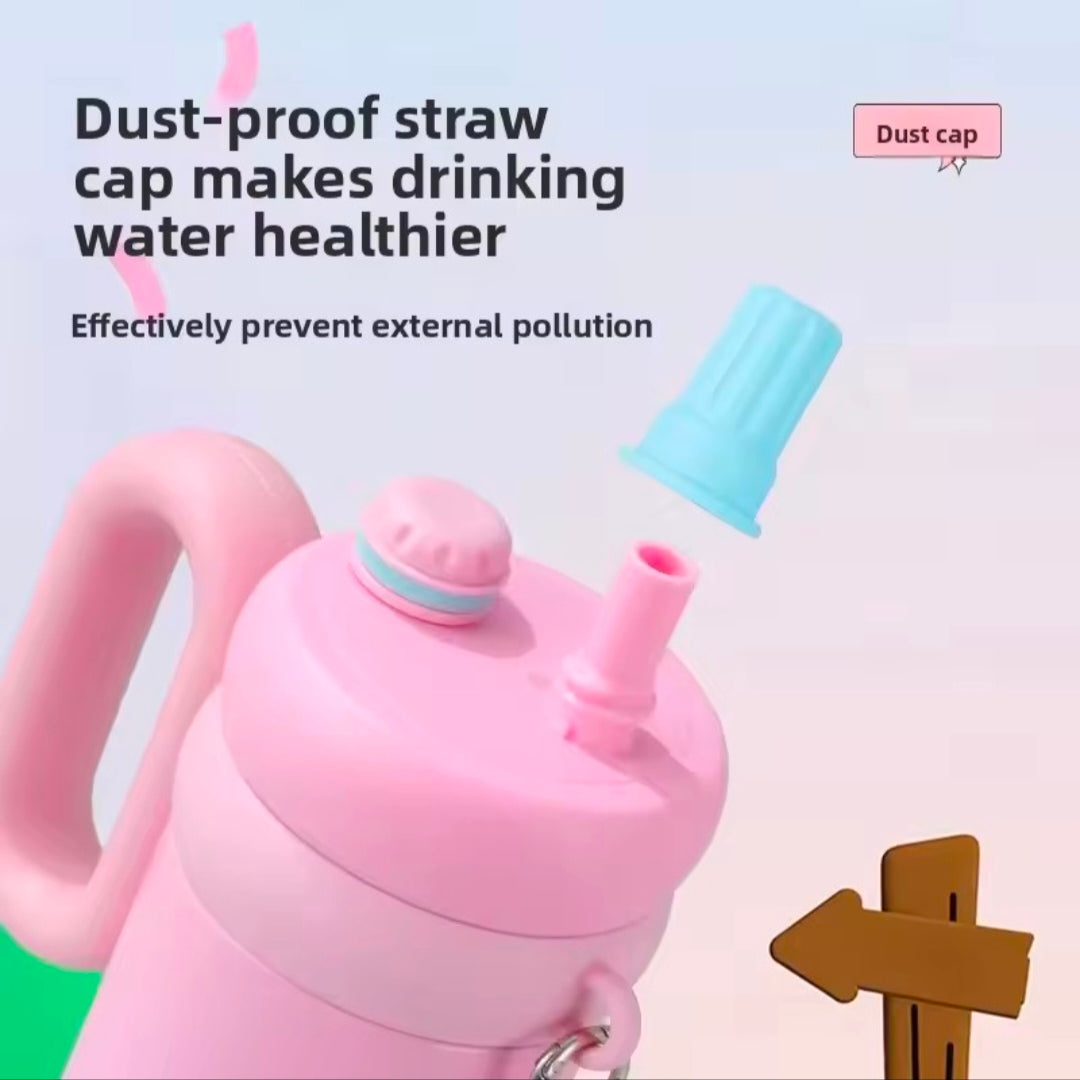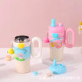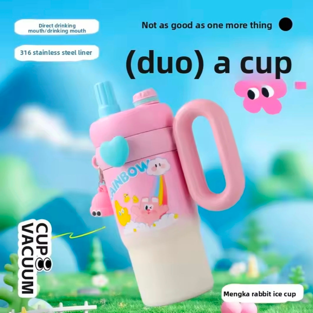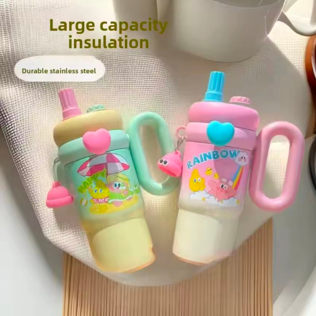 New Cute Cartoon Pattern Large Capacity Stainless Steel Insulated Mug Portable Car Vehicle Cup with Handle Thermal Flask