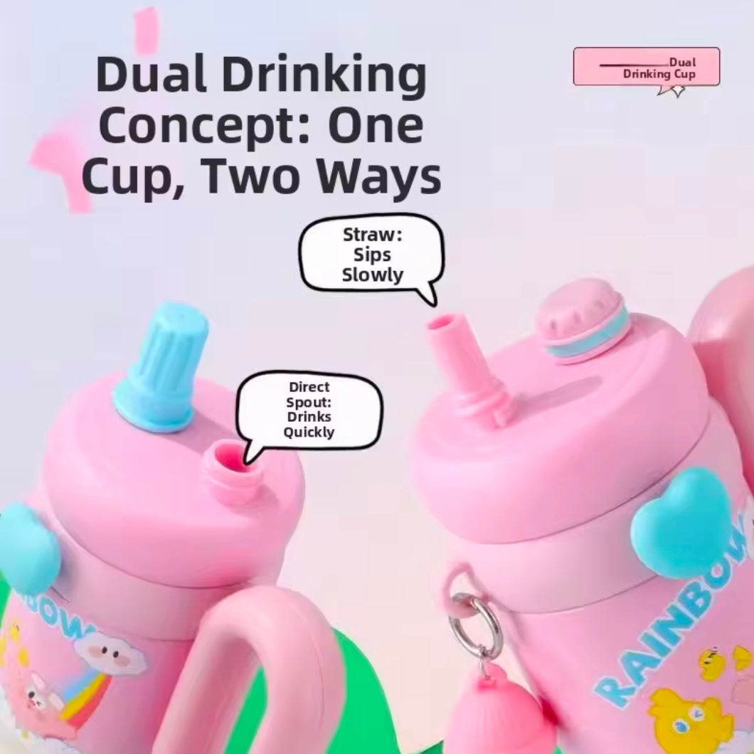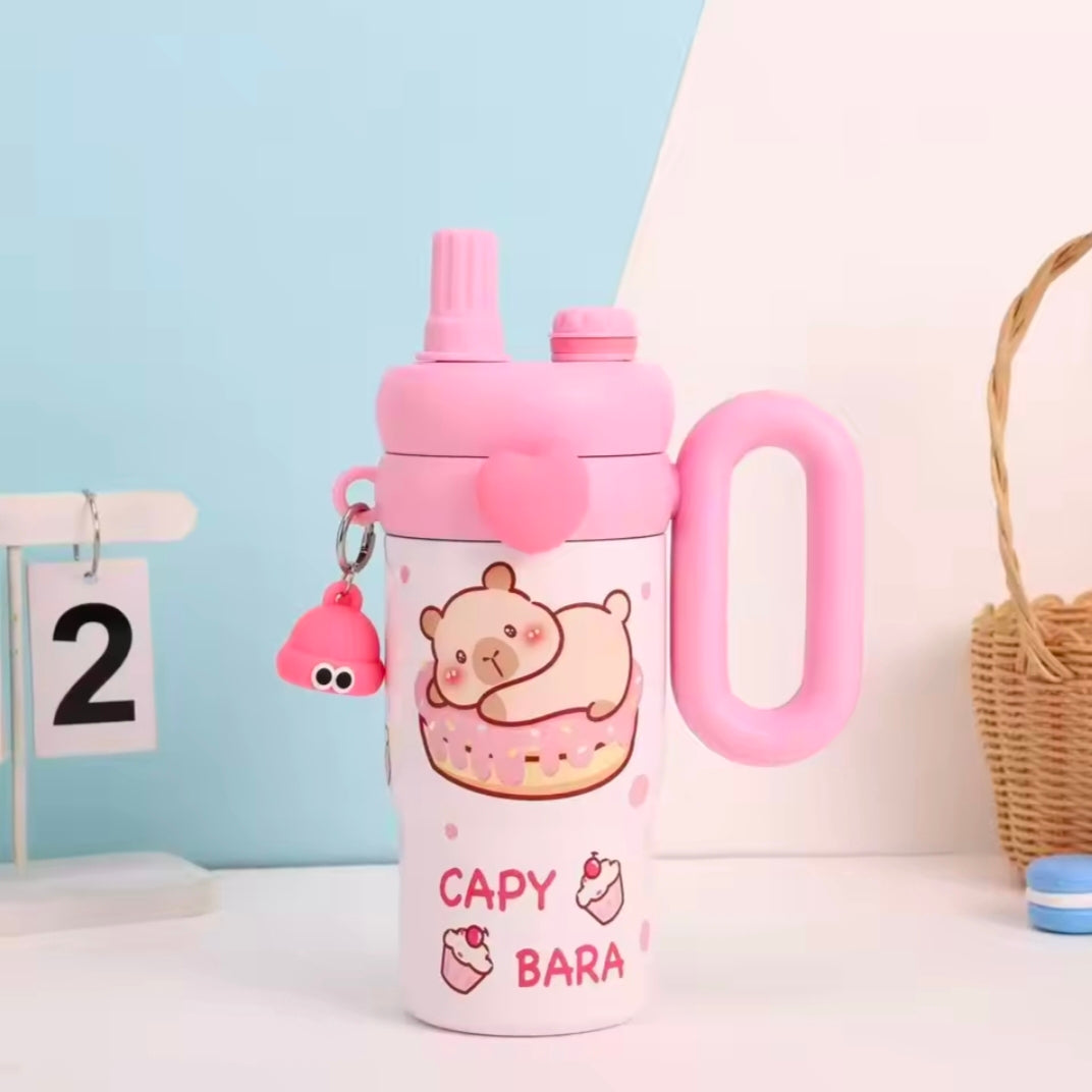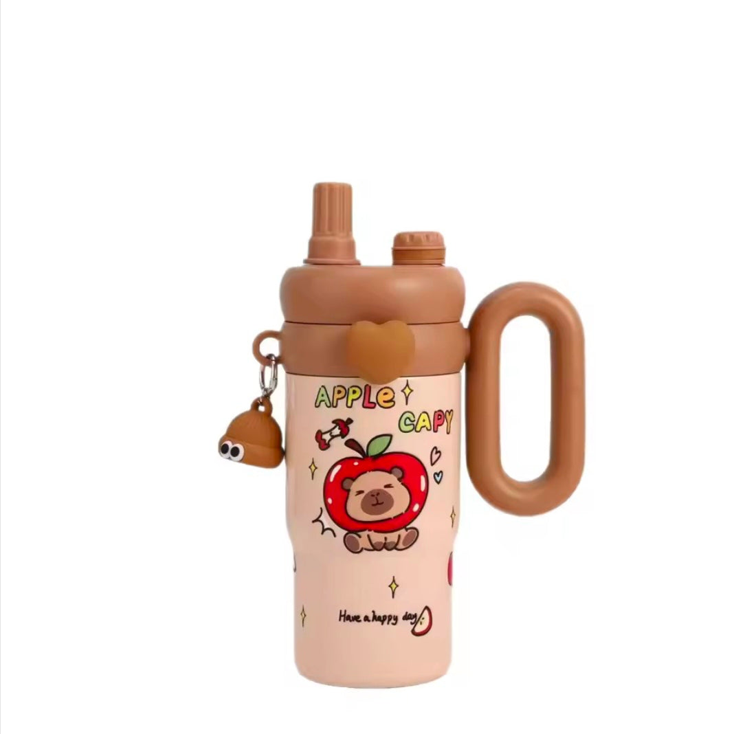 New Cute Cartoon Pattern Large Capacity Stainless Steel Insulated Mug Portable Car Vehicle Cup with Handle Thermal Flask