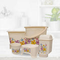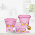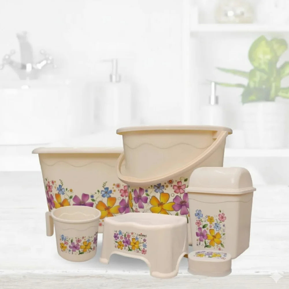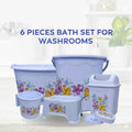 Rosetta Bathroom Sets - 6 Pieces The set includes1 tub, 1 bucket, 1 bath seat/stool, 1 bath mug 1 Basket 1 Shampoo Rack