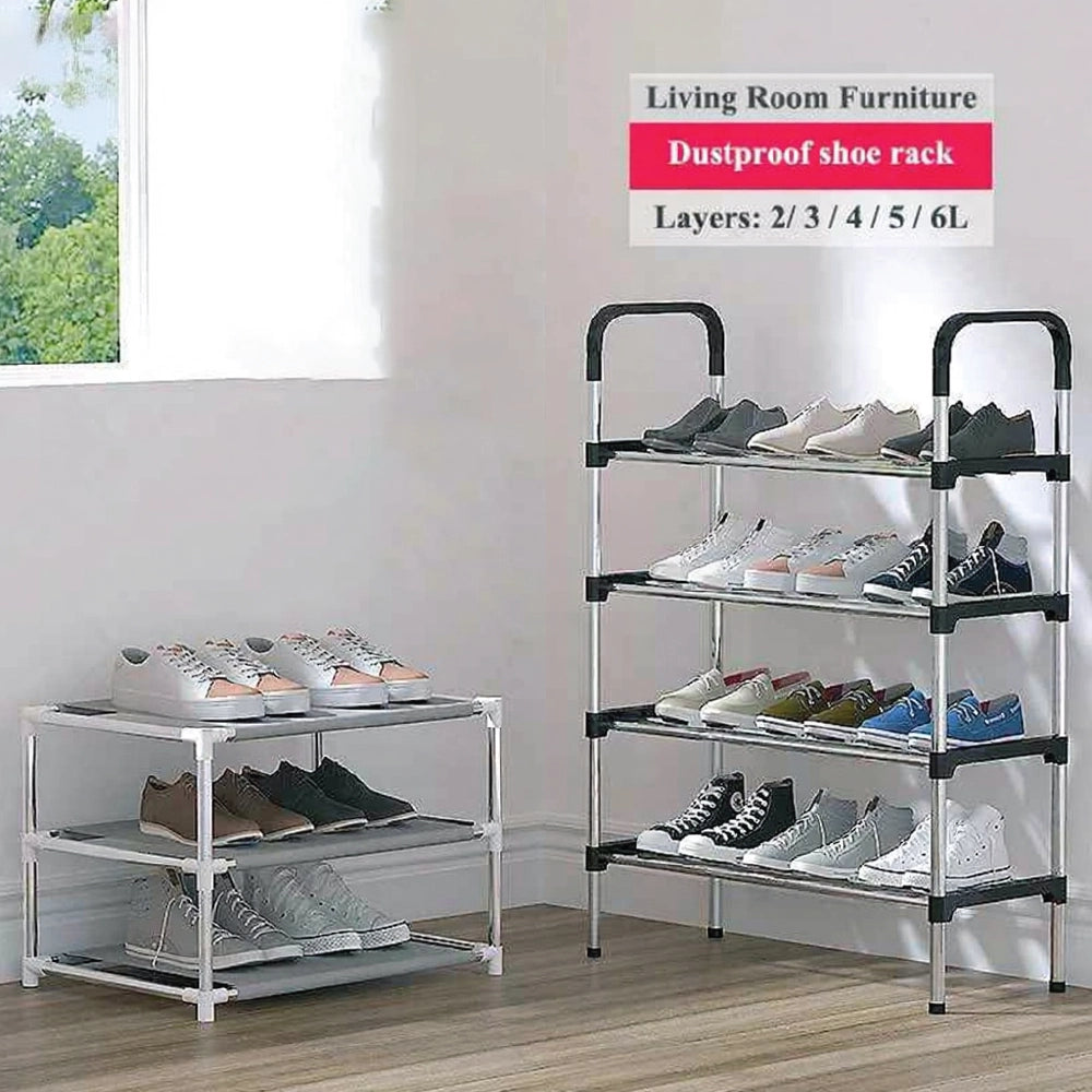 Simple Multi-6 layer Shoe Rack Stainless Steel Shoe Organizer Door Bedroom Shoes Cabinet Storage Living Room Folding Hanger Home