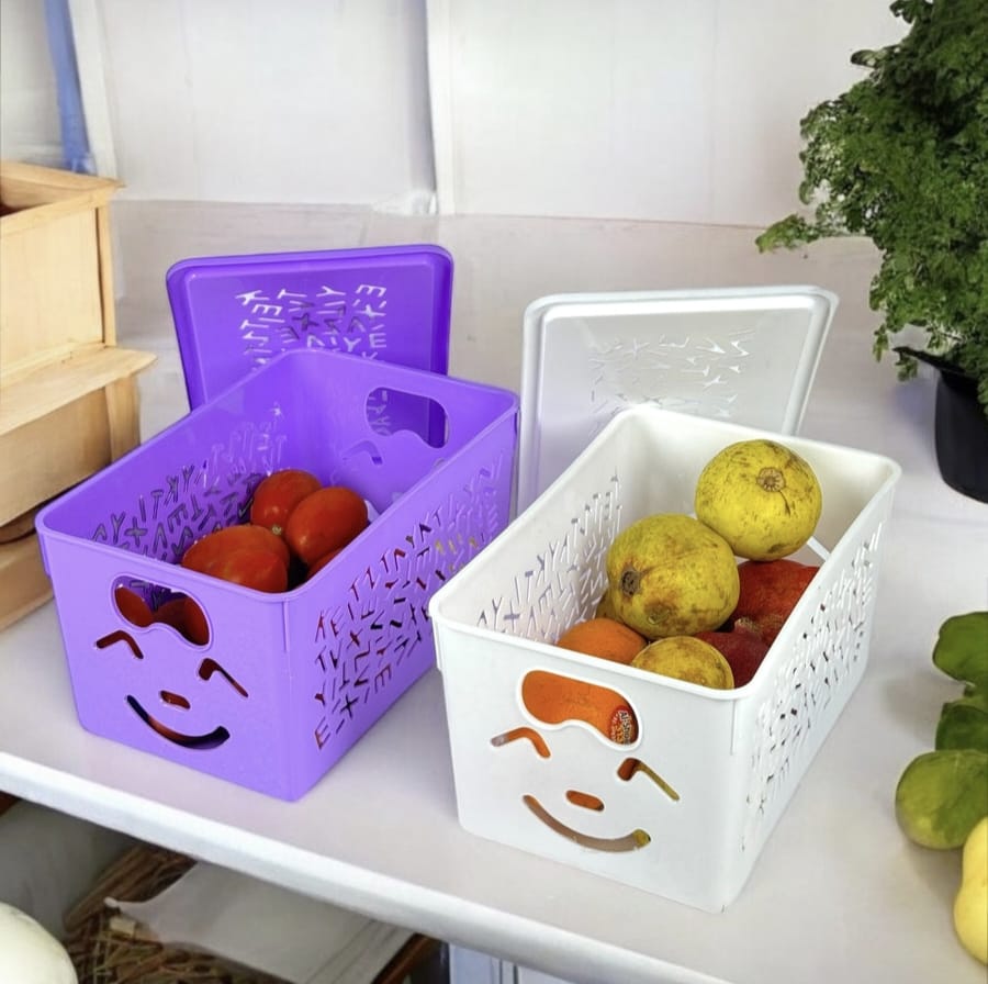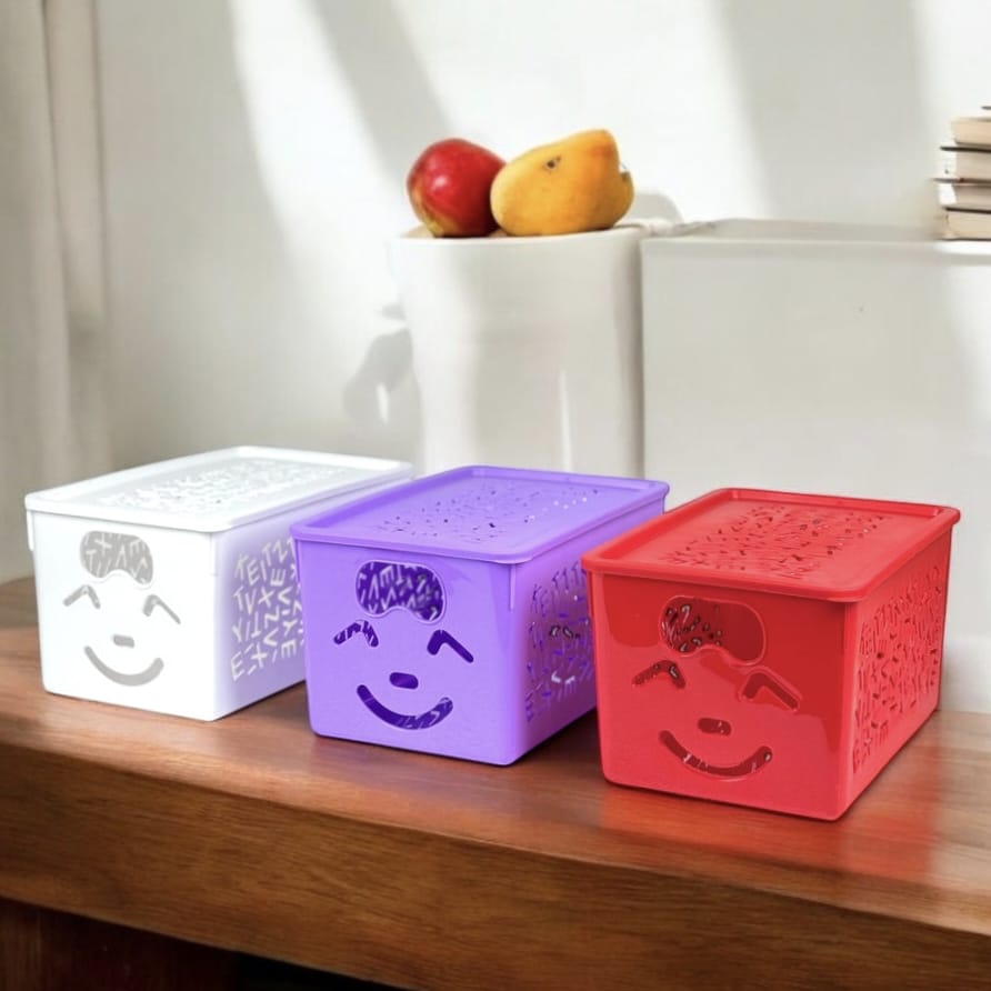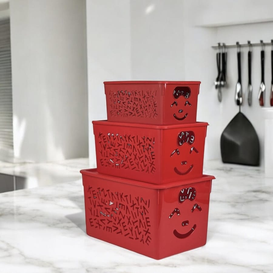 1) Lightweight ye t tough and durable. 2) Multipurpose storage organizer. 3) Sassy design with convenient grip makes it perfect for everyday use. 4) Merry and bright colours offer to lift and lighten the mood. 5) Dimensions: Small:11.5x19x9.5 Medium: 14x23x13.5 Large: 17x26x16.5.-