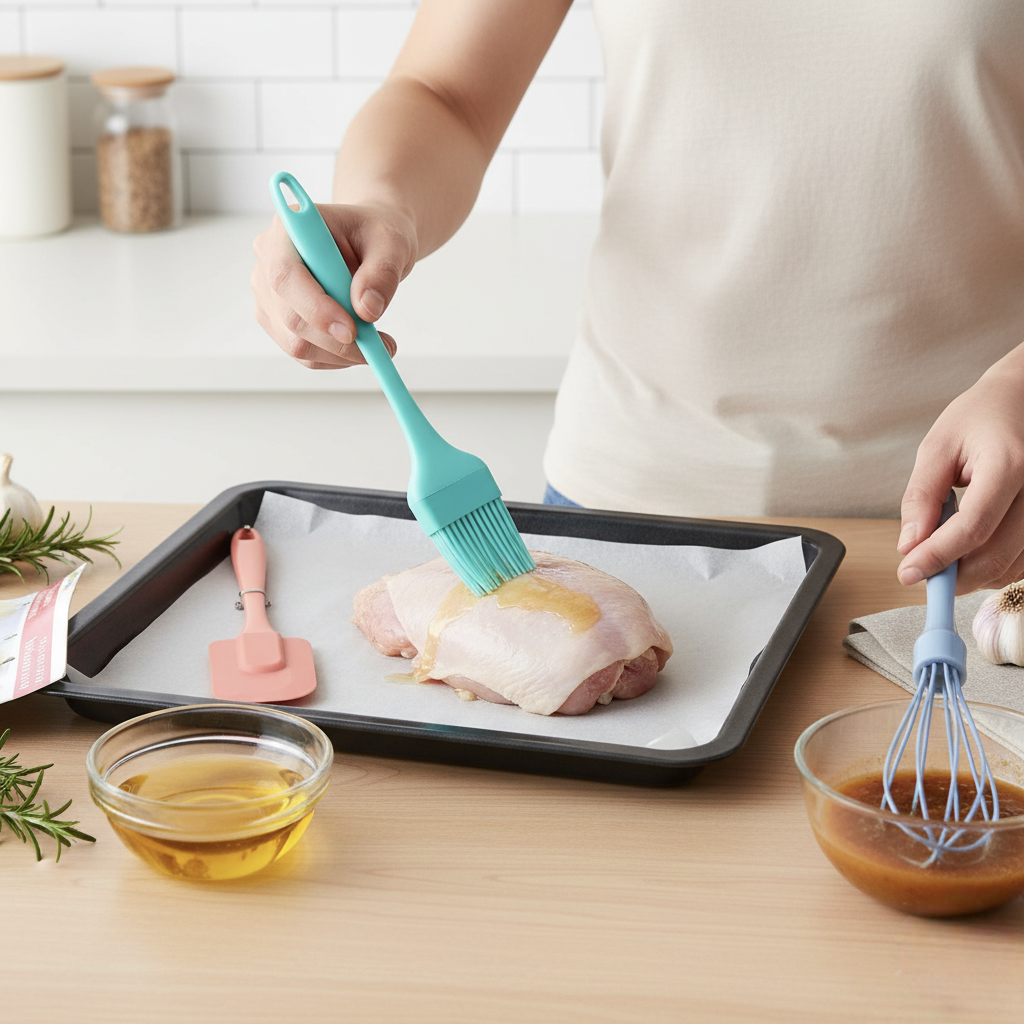 Baking Tools Silicone Spatula Egg Whisk Home Day Cream Scraper Silicone Pastry Brush Kitchen Accessories (3Pcs) Set