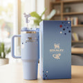 This 40 oz tumbler is made of 18/8 recycled stainless steel and BPA-free plastic.