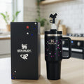 It features double-wall vacuum insulation to keep drinks hot or cold for hours.