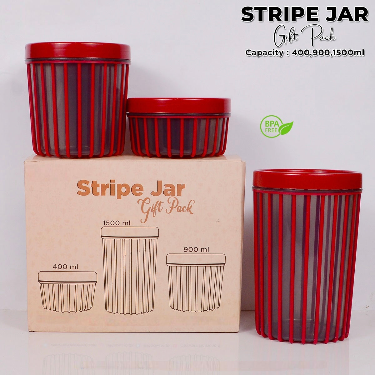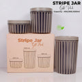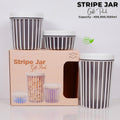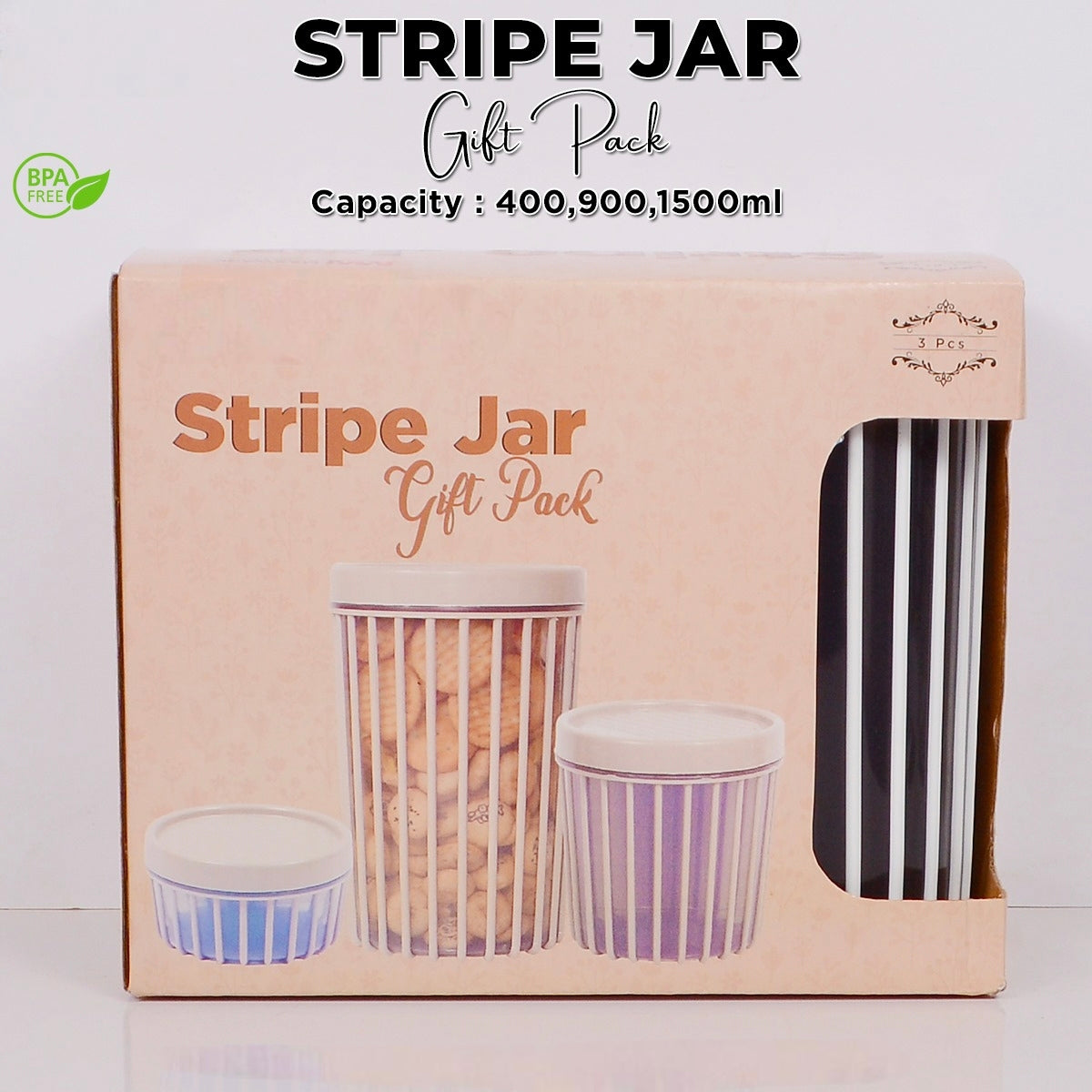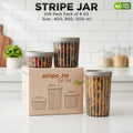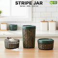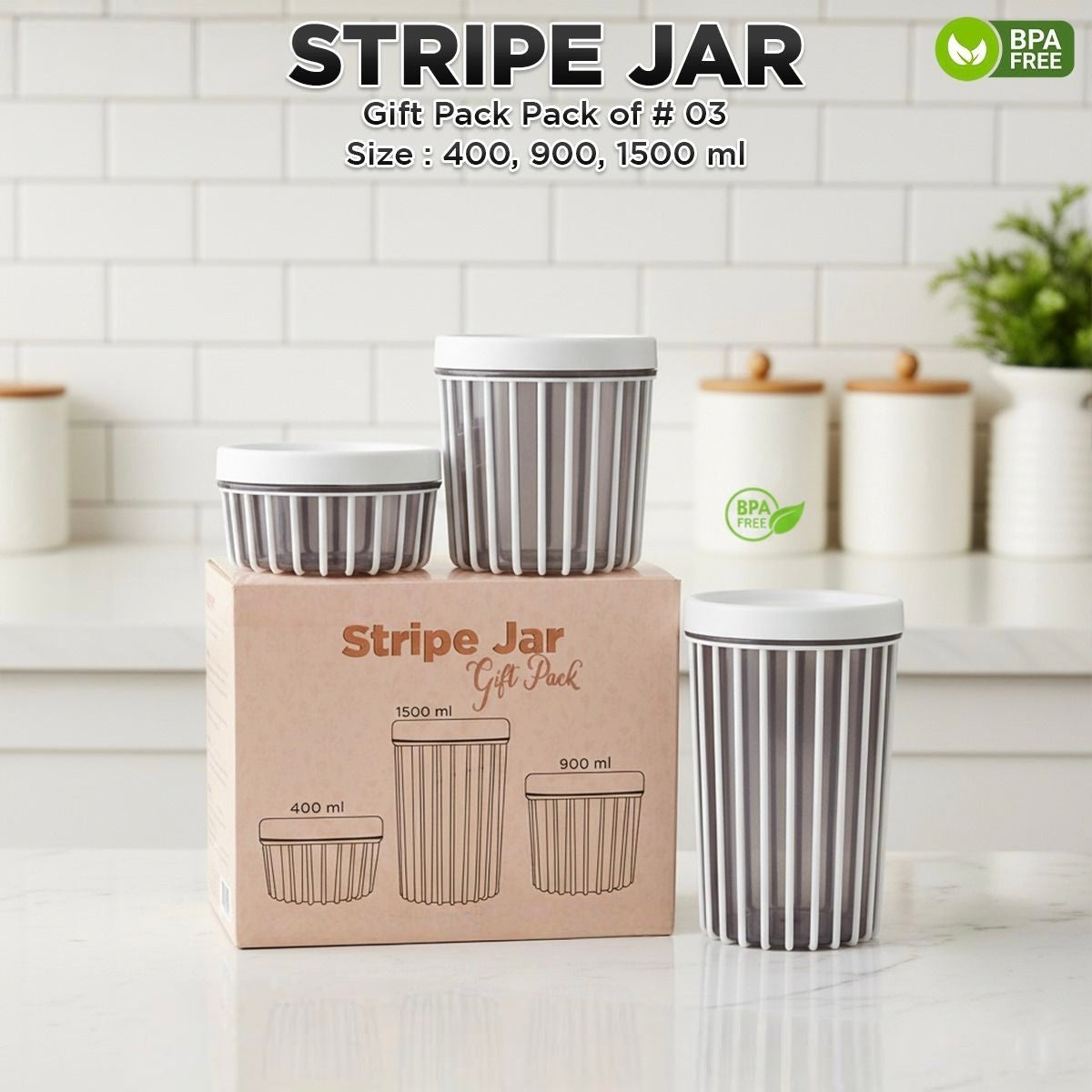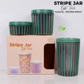 The jars have a modern striped design and are made from BPA-free, food-grade plastic.