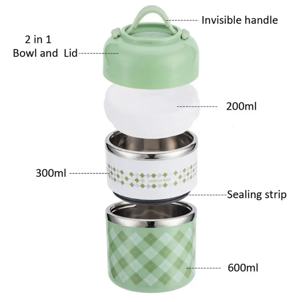 Portable Stainless Steel Thermal Lunch Box for Food Office Lunchbox Bento Boxs Thermos Lunch Box Food Container with Lunch Bag