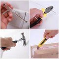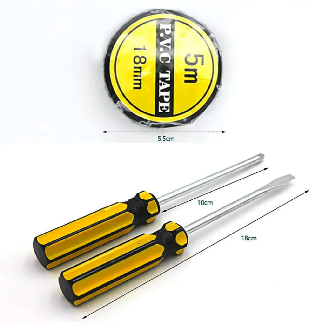 Features: 1.Flat-shaped and Phillips screwdrivers are made of CR-V alloy steel, which is strong and durable. The rubber handle is made of environmentally friendly materials, with raised patterns on the surface, which feels comfortable and effectively prevents slippage. 2.The 2M tape measure is a national standard tape, which is accurate. Strong lock, smooth tape recovery. The ruler tape has good toughness, bends at will without breaking. 3.The cutting mouth of the vise is sharp, which makes it easy to cut the wire. Non-slip rubberized handle, beautiful and durable, anti-corrosion. The pliers body is forged with high-quality carbon steel, with high cutting edge hardness, sharpness and durability. Description: This is a powerful toolbox, which is essential for your home! Specifications: Tool box size: 24*17*5cm Total weight: about 735g Scope of application: dual-use for home and car Number of kits: 9PCS Type: Repair Tool Package Included: 1x 2M tape measure 1x Utility Knife 1x slotted screwdriver 1x Tester 1x Phillips screwdriver 1x vise 1x Claw Hammer 1x Electric tape 1x box-