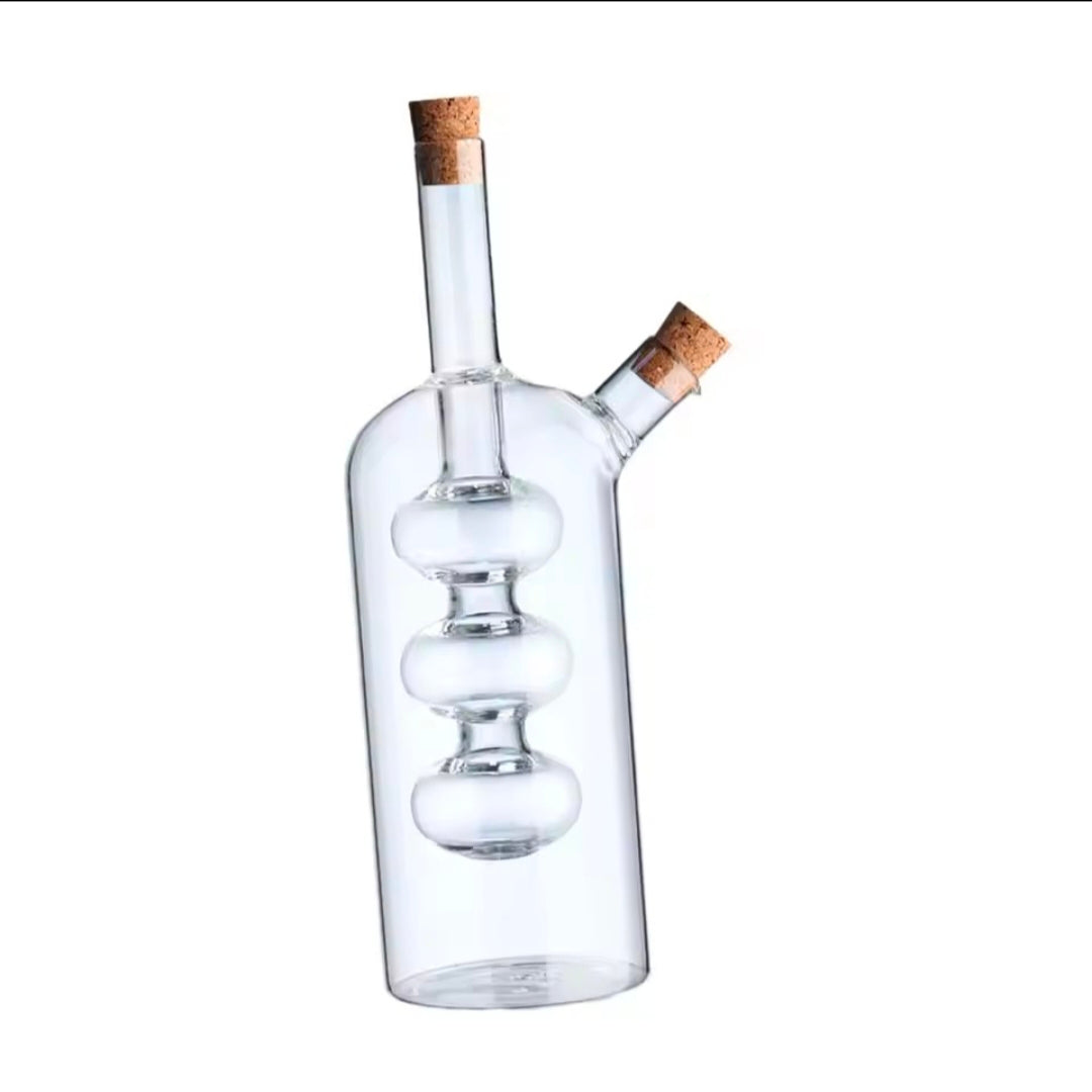 The bottle has two separate sections, allowing you to pour oil and vinegar from the same container.