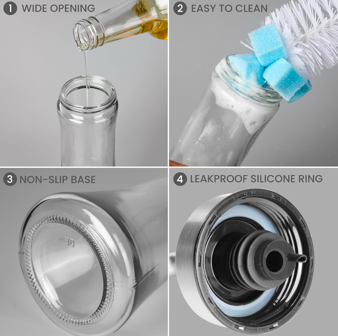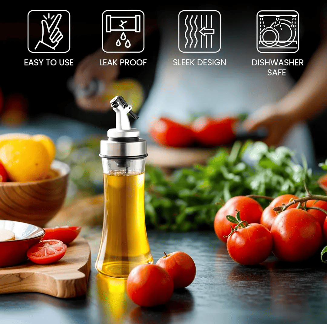Transparent Glass Press Oil & Seasoning Bottle - 200 ML