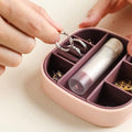 "Compact and versatile, this travel jewelry box is designed to keep your accessories neatly organized while you're on the go. With dedicated compartments for lipstick, necklaces, earrings, and more, it's the perfect solution for fashionistas who love to stay stylish wherever they wander. Say goodbye to tangled jewelry and hello to hassle-free accessorizing with this multifunctional storage box, your essential companion for fashionable adventures."
