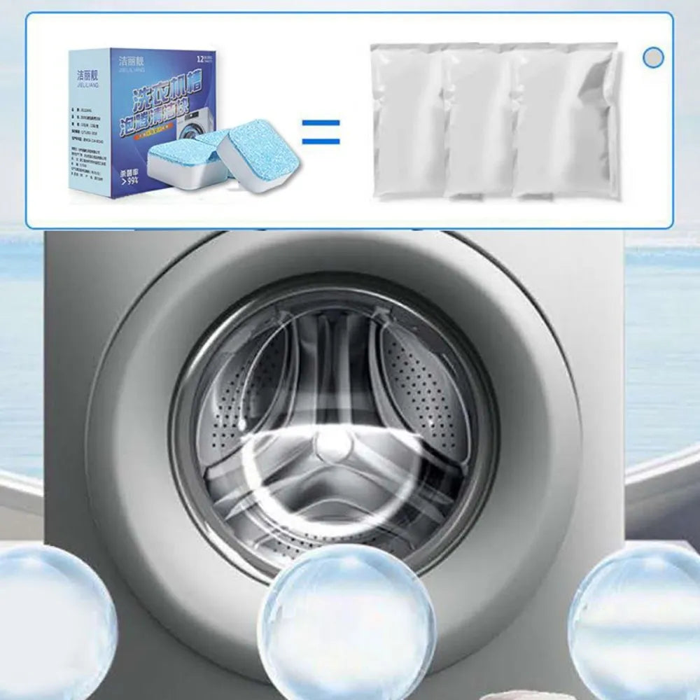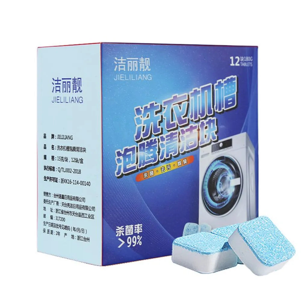 Keep your washing machine fresh and clean with these 12pcs Washing Machine Cleaner Effervescent Tablets. Designed to effectively remove dirt, residue, mold, and unpleasant odors, these powerful tablets dissolve quickly and deep clean the inner drum, pipes, and other hidden parts of your washer. Suitable for both top-load and front-load machines, they help maintain hygiene and improve washing performance.