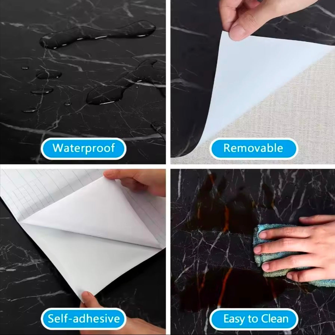 Waterproof Marble Self Adhesive Wallpaper Vinyl Film Wall Stickers Bathroom Kitchen Cupboard Room Decoration Sticky Paper Decal