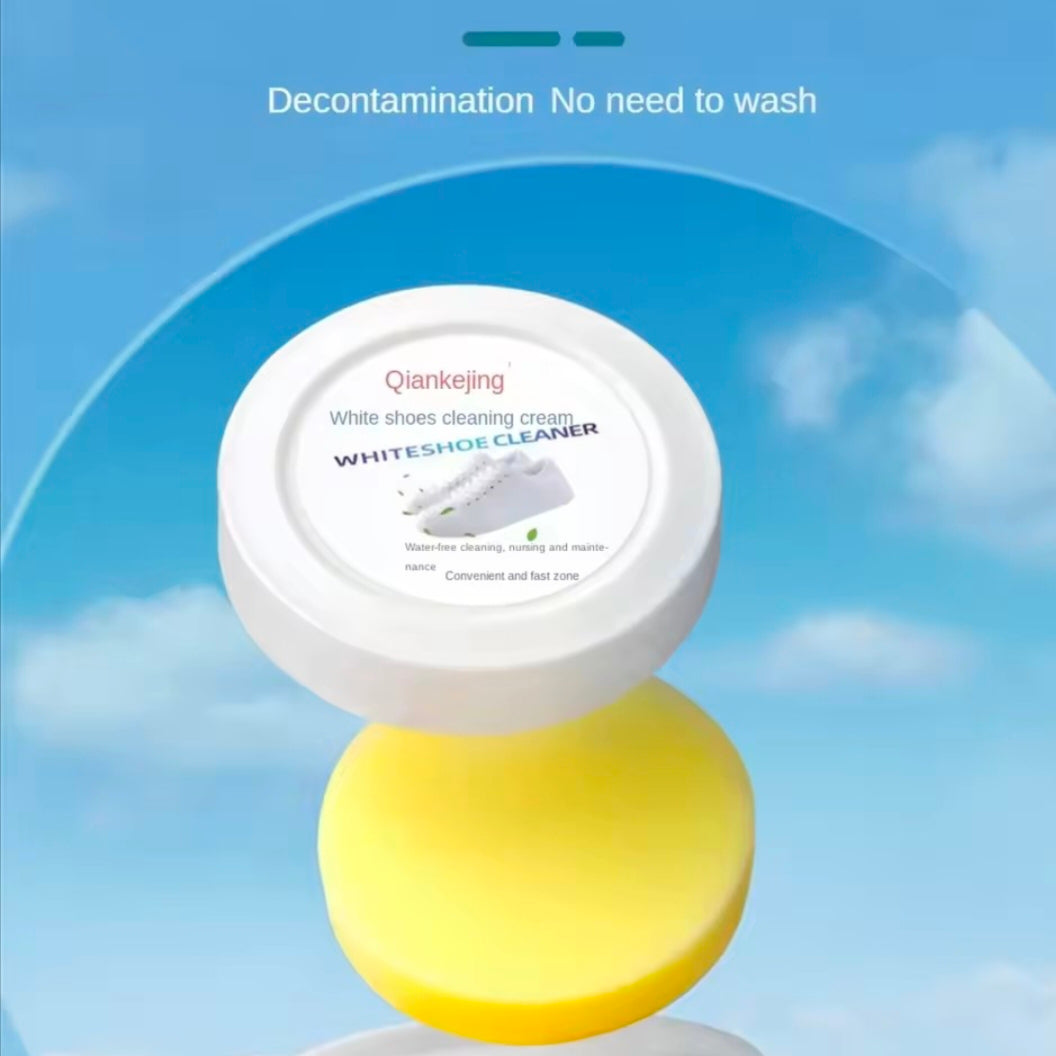 White Shoes Cleaning Cream 120g Stains Remover Whitening Formula Waterless Cleanser for Sneakers Leather Shoes with Wipe Sponge