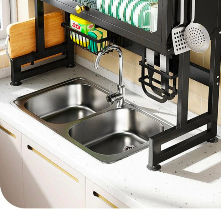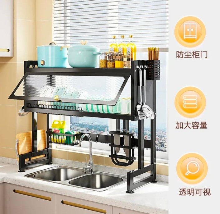 Type: Over-sink dish drying rack, often featuring a multi-functional design with a dish rack, utensil holder, and sometimes a cabinet or cover.